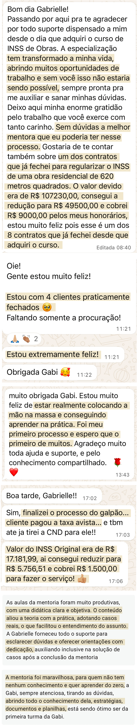 Gabrielle Sasse é uma grande referência em INSS de Obras no Brasil. Com uma trajetória consolidada na regularização de obras, já ajudou regularizou + de 400 obras e reduziu + de 7 milhões em INSS por meio de estratégias avançadas e totalmente dentro da legalidade.