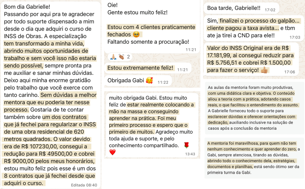 Além de empreendedora, Gabrielle também é mentora, palestrante e especialista convidada em eventos sobre regularização de obras e reduções de INSS com estratégia. Sua missão é tornar esse conhecimento acessível e transformar a forma como profissionais e donos de obras lidam com a tributação na construção civil.